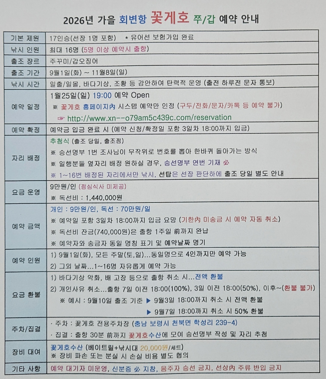 2026년 낚시예약 안내